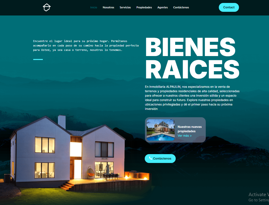 - Diseño Profesional: Interfaz limpia y organizada para presentar las propiedades, servicios y agentes de manera atractiva.
